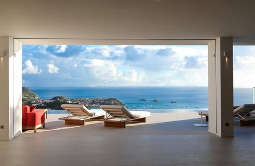 Located in Colombier, this luxury villais a recent property that offers a breathtaking view of the Caribbean Sea and the port of Gustavia. This architectural gem and sun-soaked paradise isthe best choice for a premium experience with friends, while enjoying the unforgettable and fascinating sunsets every evening.