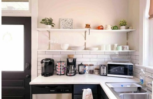 The apartment is on the first floor of a two level 1920s duplex in a quiet historical neighborhood of Richmond. The apartment has an open floor plan with a full kitchen, including a stove, full sized refrigerator, microwave and coffee maker. Between the kitchen and the living room is an open area with a small table and chairs. The bathroom and bedroom are located off of the main living space. The bathroom has been completely renovated with a walk-in tiled shower and brand new fixtures. The bedroom has a queen size bed and a hanging space for clothes. The apartment has a newly installed central AC and heat which is controlled independently from the rest of the house as well as radiator heat.