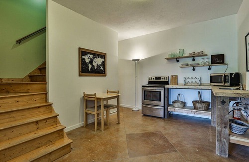 The open concept floor plan allows for easy entertaining and was designed with beauty and comfort in mind. There is a 55" You Tube TV. The wood burning fireplace provides warmth on those chilly fall and winter days all the while bringing a coziness to the somewhat contemporary feel. There are 3 bedrooms on the main floor, the King Master with its own private bath with custom tiled walk in rain shower, double vanities and your own washer and dryer.