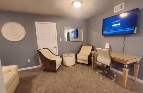 Southern Luxurious 112Large beds with- Over 2000 Square Ft is distributed in Large 6 sleeping areas. Contains , 7 Smart Televisions to catch up with your online streaming programs. Super Fast WIFI to connect you with remote work assignments. Double Living Room. Eat in kitchen. Large Yard in a corner Lot. Resting along the eastern most border of Memphis is the large and pleasant community