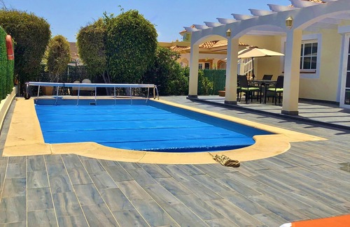 Superb, private golf villa Ideal location 300mb Internet and pool table is located in Caleta de Fuste. Superb, private golf villa Ideal location 300mb Internet and pool table provides accommodation, featuring Sports/Activities, Internet, Pool, among other amenities. This Villa features Sports/Activities, Internet, Pool, to make your stay a comfortable one.