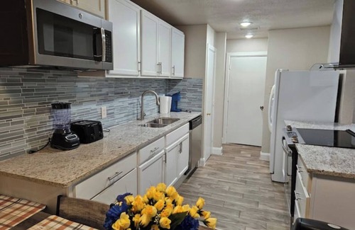 New Renovation! Kick back and relax in this cool, calm, and stylish space. Home is warm and inviting especially for a large group. A big backyard with outdoor grilling and seating area also comes with the territory. Come on down and enjoy! Home has a 65" TV and two 50" Tvs.