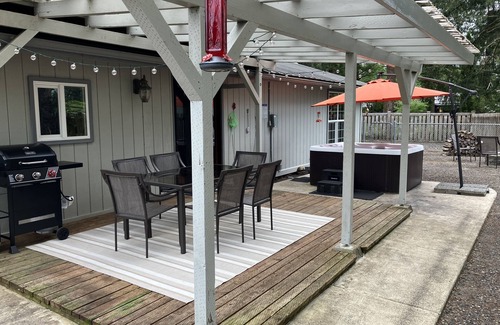 Escape to the Forks Fir House in stunning Forks, WA! Surrounded by trees, this 3-bedroom, fully stocked retreat sleeps 8. Enjoy a fire pit, hot tub, fenced yard, streaming TV, high-speed internet, and a grill for outdoor cooking. Experience comfort, convenience, and natural beauty.