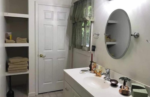 This is a fully furnished 930 sf cottage detached from the main house in a private country setting of 4 acres of wooded land. Hartsfield Jackson Airport is only 20 miles away, only 1 mile just outside Peachtree City, and 10 miles from Senoia, home of The Walking Dead. Pinewood Studios is 10 miles away. There is an NCG Theater 2 miles away, and a Sams Club and Costco 1 mile away. Lots of shopping opportunities at The Avenue in Peachtree City, and loads of restaurants as well.