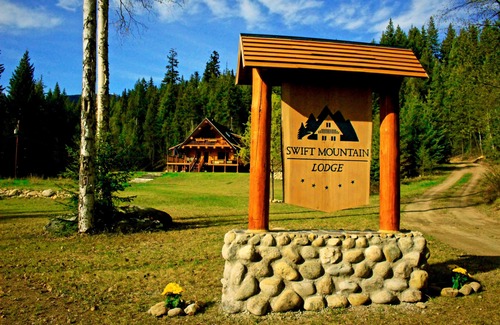 Swift Mountain Lodge is set in 40 acres of land in a clearing along a river that is known for spawning salmon in late summer.