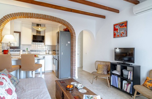 Nerja: Modern, cosy, comfortable apartment block "Tanger", renovated in 2022. El Oasis de Capistrano, in the resort, 3 km from the centre, in a secluded, quiet position, traffic calmed area, 650 m from the sea, 3 km from the beach. For shared use: with lawn and flowers, 2 swimming pools (seasonal availability: 01.Jan. - 31.Dec. pool opening hours: 10:00-20:00). WC in the pool area, shower/WC in the pool area, children's pool, patio, bathing place. Private: with wildlife garden and flowers, parking, public parking on the road. Grocery, supermarket 500 m, bar, café 100 m, bus stop 300 m. Golf course 24 km. Nearby attractions: Cuevas de Nerja 2 km, Acantilados de Maro 3 km, Frigiliana 5 km, Málaga centro 50 m, Granada centro 97 m. Well-known ski regions can easily be reached: Sierra Nevada 126 km. Hiking paths: Sierra Almijara 7 km, Sierra Tejeda 10 m. Please note: car recommended. Suitable for families, suitable for seniors.