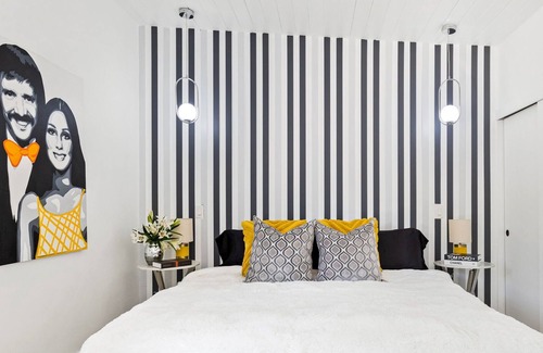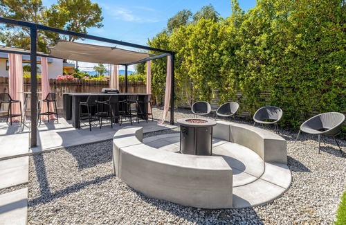 Enjoy a stylish experience at this centrally-located luxury home just minutes away from Downtown Palm Springs. Recently renovated from top to bottom, features all of the highest quality amenities to give your trip the experience you deserve. Featuring a large pool and fire pit, with more than enough seating and daybeds to accommodate any group of people. Take a quick drive or Uber to downtown to enjoy all of the amazing Palm Springs experiences easily!