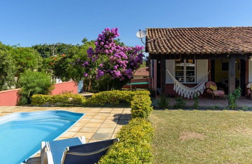 Cozy house, well located, 50 meters from the beach of Manguinhos, with pool, barbecue and air conditioning in all rooms. Located in a quiet and safe street, 700 meters from Geribá. It has two WI-FI networks, cable TV and Smart TV 4K 55 ". The house is close to three supermarkets, restaurants, shops, gas stations, pharmacies and banks 24 hours.