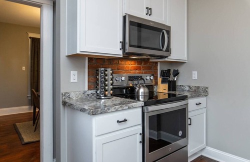 The Colonels Apartment is a freshly renovated 3bedroom 1bath downtown Richmond apartment. This historic building has just undergone a major facelift and the owners spared no expense! Full of character, comfort, & all the modern-day amenities guests will truly live like a local while only being minutes from EKU Campus, Downtown Richmond, I-75, Berea, Lexington & so much more. This unit features parking, fully stocked kitchen, ROKU TV's, Wi-Fi, washer/dryer & so much more!