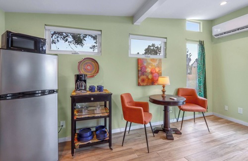 Inside, fun eclectic décor adds a touch of personality, making the cottage feel like a true home away from home. While the property offers peace and seclusion, guests should note that there are three additional rental units on-site, with some shared amenities.