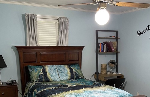 Enjoy your stay in our peaceful Cozy Cottage. This Mother in law suite includes 2 bedrooms each with a cozy queen bed, private closet, smart tv, ceiling fan and ample plugs including USB ports for all of your electronic needs. One bath/ shower combo including fresh towels (separate makeup removing cloths please use), makeup remover wipes, Antibacterial hand soap and extra toilet tissue. Full living room including smart tv, couch, oversized chair, desk for all your work needs,Mini fridge, Microwave, bottled water, coke, sprite and Keurig coffee bar. Enjoy your day or evening on the covered private porch while enjoying the beautiful SC weather. No kitchen or washer & dryer. The hall closet is stocked with towels, washcloths, iron, ironing board, hair dryer and extra blankets. No access to main house. We do live in the main house but completely respect your private space and privacy from our separate locked living quarters. Free street parking only(please don’t block driveway or mailbox).
