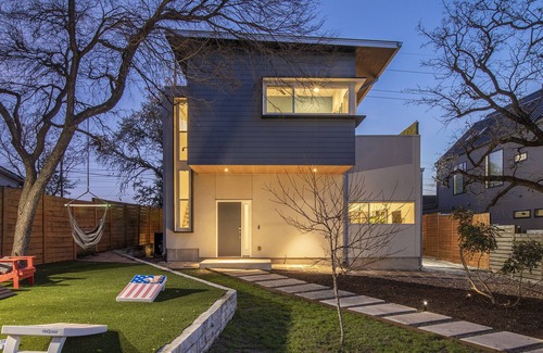You want your next vacation home to have wow factor, and the Eastsider has plenty to offer. This beautiful modern home with contemporary interior design and seamless indoor-outdoor living is the perfect spot for your Austin, TX checklist. If that list includes staying in a private sanctuary tucked right in the middle of Austin's hottest attractions, The Eastsider can check it off. The State Capitol, Waterloo Park and amphitheater, Moody Center and basketball arena, UT Campus and football stadium, 6th Street District and Rainey Street district are all just a 10-20 minute walk away. And if that all seems too good to be true, you are also a 15-minute drive away from the airport.