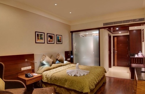 The Golden Palms Hotel & Spa Delhi offers 50 air-conditioned accommodations with minibars and safes. Accommodations offer separate dining areas. Beds feature pillowtop mattresses. Flat-screen televisions come with cable channels. Guests can make use of the in-room refrigerators and coffee/tea makers. Bathrooms include showers, complimentary toiletries, and hair dryers.