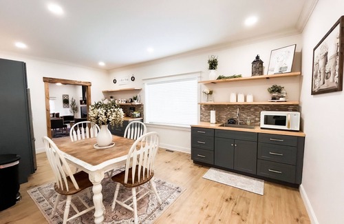Guests can start their mornings at the fully stocked coffee and tea bar or prepare light meals in the convenient mini kitchen, complete with a refrigerator, microwave, air fryer, toaster, and griddle. Relax in the shared sitting area, thoughtfully designed for unwinding with a good book, a refreshing drink, or conversation after a day of adventure.