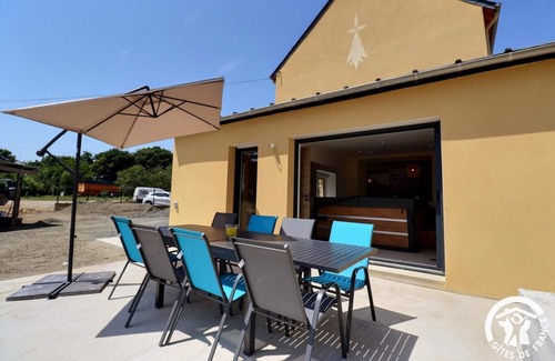 House spread over three levels. On the ground floor: - a living room with a kitchen, a dining room, and a lounge - a relaxation area with a 5-seater spa - a bathroom with toilet - a laundry room On the 1st floor: - a bedroom with a 160x200 cm bed, a television, and a private bathroom - a bedroom with two 90x190 cm beds - a bathroom - a separate toilet with a washbasin On the 2nd floor: - a bedroom with a 160x200 cm bed and a television - a bedroom with two 90x190 cm beds - a games room Outside: - a large terrace surrounding the house with garden furniture - a plot of land currently being developed: a lawn adjacent to the cottage is available for use during your stay Parking is available on the property. Located in a cul-de-sac, this spacious cottage is a true invitation to relax! This beautiful, fully renovated farmhouse has been converted into a large, welcoming cottage where authenticity and modernity combine to offer you an unforgettable stay. From the moment you enter, you'll be captivated by the vast, bright living room, designed for conviviality. The elegant decor in soft hues creates a welcoming and soothing atmosphere, ideal for recharging your batteries with family or friends. For a moment of well-being, a large indoor spa is available year-round, promising moments of relaxation throughout your stay. Perfectly equipped to accommodate both young and old in optimal comfort, this unique setting combines space, privacy, and serenity. Located at the gateway to the Brocéliande region, this cottage is the ideal starting point for exploring Arthurian legends, wooded trails, and the region's enchanting landscapes.