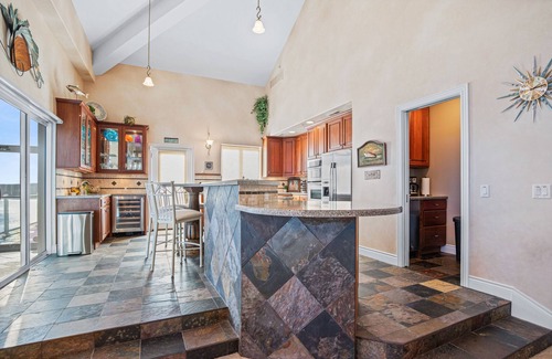 Inside, you'll find a grand entrance that opens up to soaring vaulted ceilings and an expansive wall of windows displaying the Lake's beautiful, picturesque State Park all anchored by the towering slate fireplace mantle and entertainment center. The main living spaces are simply an entertainers delight! The kitchen is equipped with just about everything you could imagine from the butlers pantry to dual ovens, a wine cooler, ice-maker, a wet-bar, and even a serving sink atop the island! The loft area offers a card and poker table that converts to a bumper pool table. This area is also great for kids to gather for gaming and such.