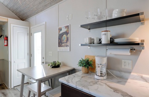 Escape the hustle and bustle of St. Louis with a stay at this chic countryside vacation rental in Defiance, MO. 'Merlot Bungalow' offers a studio interior with a bathroom and a well-equipped kitchenette, perfect for couples and small families seeking modern simplicity. When you're not out sampling local wineries or hiking along the nearby Katy Trail, you can unwind at this tiny home retreat with a charcoal grill, a fire pit, and peaceful natural surroundings.
