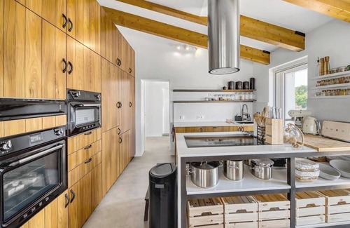 The Ocean Farm holds a fantastic location set within an area of natural beauty, guests will enjoy being able to explore the wonderful countryside surroundings, with walking and cycle paths right from the front door. For those wishing to explore the west coast beaches, a variety of popular surfing beaches are within easy reaching distance including Arrifana, Amoreira and Odeceixe, all less than thirty minutes away. There is even a beach in walking distance from the house, called Praia da Quebrada.A modern oasis, this charming eco-friendly property offers a haven away from the busy tourist areas, with sophisticated living spaces spilling out onto elegant terraces, providing all the perfect ingredients for an unforgettable holiday in the Algarve.Its modern architecture sets it apart from other houses in the area. It is superbly furnished and appointed open-plan interiors seem to lead inevitably to the large furnished terraces. Nowhere else will you find a home of the quality, size, facilities and levels of service that this phenomenal home offers.Outside, there is a large pool made of natural stones and sun loungers to enjoy the Portuguese sun. Afterwards, enjoy a yummy barbecue al fresco on the terrace while enjoying the tranquil surroundings.Accommodation: 14 - 20 persons, 7 + 2 bedrooms, 7 + 2 bathroomsInterior- Reception hall with guest toilet- Living area with large windows and sofas- Dining area with large dining table with chairs and fridge- Fully-equipped kitchen with 2 x smeg ovens, veg steamer oven and plate warmer, induction hob, fridge, freezer, citrus juicer, blender, smeg dishwasher.- Utility room with 2 washing machines and a tumble dryer.- Basement room including Finnish sauna, outside shower- Bedroom 1 with king-size bed, 1 single bed, garden access and en-suite shower room- Bedroom 2 with twin single beds, garden access and en-suite shower room- Bedroom 3 with king-size bed, garden access and en-suite bathroom- Bedroom 4, 5 & 6 with king-size bed, garden access and en-suite shower room- Bedroom 7 is located in the annexe and has two single beds, garden access and en-suite shower room- Note: max 5 double beds + 4 single beds / 3 double beds + 6 single beds- Apartment 1: King-size bed + sofa bed (1.40 x 2.00), shower room, kitchen, fireplace- Apartment 2: King-size bed, shower room, kitchen* Please note that the apartments can be booked by other people as well, if not booked by yourselfExterior Grounds- Private swimming pool (12 x 8 meter)- Large gardens- Amazing lake to swim in- Seating areas- Outside kitchen with fridge, pizza / bread oven and sink- Charcoal barbecue- Hammock- Yoga room, with kitchen and bathroom, including yoga mats and blocks- Farm animals such as: donkeys, sheep, goats, chicken and also some dogs :-) Additional Facilities- Wi-Fi (Starlink) throughout the house- Ethernet connections in bedrooms- 1 wheelchair friendly bedroom and bathroom- Underfloor heating / cooling throughout the house- 2 Washing machines and 1 tumble dryer- 2 Travel cot & 2 high chairs available on request- Parking- Complimentary toiletriesSurroundings:The Ocean Farm is located in the "Sudoeste Alentejano e Costa Vicentina" Natural Park, where you will find the most beautiful and unspoiled beaches. This coast is well known for some of the best surfing spots in Portugal. Outside the areas of mass tourism! The nearby town of Aljezur (13km away) is located at the foot of the Monchique Mountains, in a green environment. Aljezur offers several traditional restaurants, supermarkets and a variety of shops. A trip to the busier tourist resorts in the Algarve, including Lagos (20 min), Portimão and Albufeira is easy to do with your car or by bus. Faro airport is a 60 minute drive.Included in the rental price- Water & electricity- Bedding, towels and pool towels- Underfloor heating - Wifi- High chair and cot- Complimentary toiletries- Final cleaningExcluded in the rental price- Security deposit: € 1.500,-Important information- During the high-season minimum stay is 7 nights - The owners live on the property as well to take care of the farm :)- The apartments can be booked by other people as well, if not booked by yourself- Tap water is drinkable :-) - The pool has no fence for children- Check-in from 16.00 check-out before 10.00- Smoking inside the accommodation is not allowed- Pets are not allowed- Children are allowed- The pool is open all year, but not heated