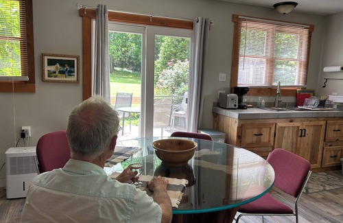 The Studio at Gallery339 is a private, comfortable studio apartment located in the rear of Gallery339 Hot Springs, a fine arts gallery and working studio of artist Terry Thirion. Sleeps two (a roomy and an unusually comfortable queen-size futon and an additional single cot), private entrance, full kitchen and bath, outdoor patio with gas grille. Just a quick walk to Hot Springs businesses and restaurants and adjacent to the grounds of Laughing Heart Lodge and the AT. The Studio offers a cozy and inspiring accommodtation for area sites, events, hiking and other activities.