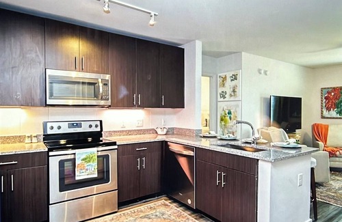 ORIENTATION AND MOVE IN SPECIALS!! Located in Oxford, this condo is a dream. With 2 pleasant bedrooms featuring 2 queen beds and 2 soothing bathrooms with showers, guests will feel right at home. Enjoy the tremendous amenities like a washing machine, AC, and WiFi. There is a gym and outdoor cooking area for all residents to use. Two parking spots allow you to just leave your car behind, and walk the charming streets of Oxford while you're here! Feel free to reach out to us during your stay - we're happy to suggest local spots to check out.