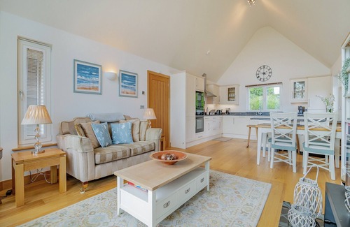 Separate Toilet.. Electric underfloor central heating, electricity, bed linen, towels and Wi-Fi included. Initial fuel for wood burner included. Rear garden with lawned area and patio. Indoor heated swimming pool (shared with other properties on-site, 4m x 2m, depth 1m-1.5m, open 07:00 - 19:00). Private parking for 1 car. No smoking. . Welcome to Twill Lodge - 4 Swandown Lodge, a beautiful two bedroom lodge set on the prestigious Swandown Lodges site at Cricket St Thomas. Stepping inside, the spacious open plan living, kitchen, dining area has a vaulted ceiling with large picture windows. The living area has comfy sofas, a Smart TV and a wood burner to cosy up in front of on those chillier evenings. The dining area is perfect for enjoying a meal or playing games with family and friends, whilst the kitchen comes extremely well-equipped with everything you will need during your stay; if you want to rustle up a quick bite or a feast for the family, you have the space and equipment to do so. The master bedroom has a kingsize bed, TV and en-suite shower room as well as French doors that lead to your patio area. Bedroom two is spacious with twin beds, TV and en-suite bathroom with shower over bath. Outside, you have a patio area, and to the side is a lawned space to enjoy.
