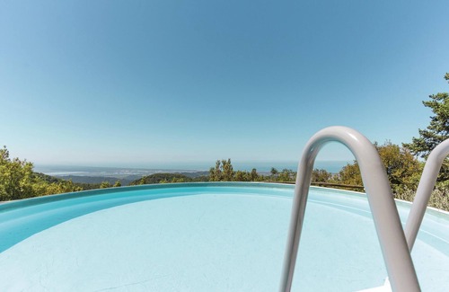 This holiday home (100 m²) was created by renovating an old stone country house. It is spread over 2 floors and offers a covered veranda (14 m²) and a terrace (15 m²). Beautiful hilly position (630 m.a.s.l.), in Versilia, above Camaiore and near the small village of Metato, in an isolated, wooded panoramic area, completely immersed in nature, the nearest inhabited houses are a few hundred metres away. Marvellous view of the sea, Lake Massaciuccoli, woods, hills and valley. Distances: Metato 2 km, Camaiore 7 km, Pietrasanta 15 km, Viareggio 16 km, Lucca 33 km, Pisa 39 km, the Cinque Terre 84 km, Florence 111 km. Services: Shops, supermarkets, restaurants and swimming pools 7 km; riding stable 14 km; tennis court and beaches (free or with bathing establishments) 15 km; golf course 22 km, thermal baths 27 km. From the house and the property you can enjoy a panoramic view of the sea, the lake as well as the valley, forests and hills. The hilly plot is approx. 40,000 m² and wooded; around the house are spacious areas with natural lawn and trees. At the back of the house there is another building of the same owner, closed and partially restored; in front of the house there is a large covered veranda with table and chairs, with sea view, and equipped with oven and stone barbecue; on another side of the house there is a large terrace, also with sea view. Not far from the house, on a meadow in a panoramic position, is a round above-ground pool (diameter 5.4 m, depth 1.2 m), with outdoor shower, deckchairs, sun loungers, chairs and parasols. is accompanied (approx. 2 km away). From the car park, the road to the