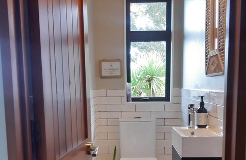 Like a treehouse nestled into the bush (but only 5km from the city centre), the Lodge offers native birdsong, 1000sqm of native & semi-tropical hillside gardens, a running stream and stunning views across Christchurch all the way to the Alps.
