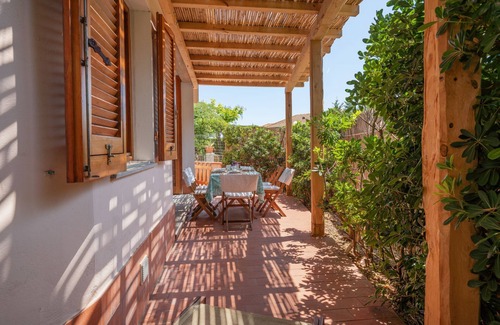 The enviable position not even 100 m. from the beach of Fetovaia and the comfortable outdoor space with a shady pergola for dining and relaxing are the strong points of the three-room apartment Giglio Ground Floor. Air-conditioned to cool the hottest summers and warm autumn stays, it also has a ventilation system with ceiling blades. With 2 bedrooms, one double and one triple, and two bathrooms (shower and shower cubicle), it can accommodate up to 7 people. The large living area, with sofa bed (2 singles), overlooks the eat-in kitchen equipped of all household appliances. The reserved outdoor parking space is located next to the house. EQUIPMENT • air conditioning • ventilation with blades on the ceiling light • hob with 4 gas burners • pots, plates, glasses, cutlery, tablecloths • dishwasher • washing machine • electric oven and/or microwave • coffee machine with capsules • hair dryer • TV with decoder • free wi-fi • garden furniture • reserved outdoor parking space next to the house