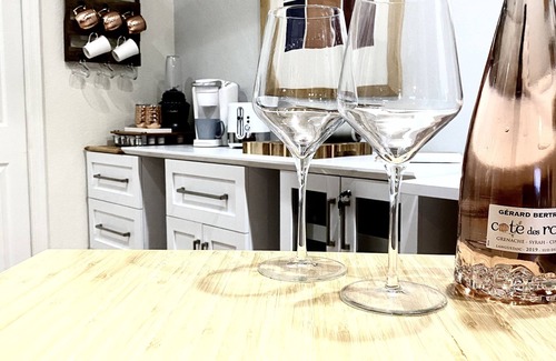 The home has a community pool, propane grill on the patio, outdoor dining, 2 large bedrooms with 1 king bed in master bedroom, 2 twin beds in second bedroom and one pull out bed in the living room. Soft contemporary decor throughout the home. Fully Equipped kitchen, All 1,800+ threads count bedding. 2 parking spaces in driving. No access to garage.