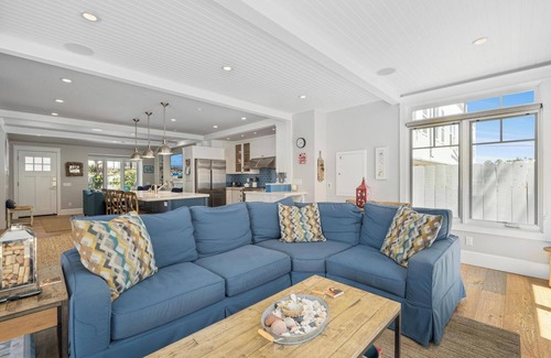 Just one street back from the oceanfront, this beautifully rebuilt single-family home (completed in 2012) blends timeless character with modern comfort. Enjoy stunning ocean views and fresh sea air from the expansive third-story rooftop deck, complete with a cozy fireplace for evening ambiance. Thoughtfully furnished in elegant beach-style decor, the home offers a relaxed, coastal vibe that feels instantly welcoming. On site parking for up to 3 vehicles as well as full size laundry included!
