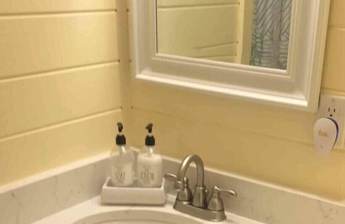 1 BR tiny home with full kitchen, bathroom, washer/dryer, wi-fi, cable, enclosed porch and covered parking that sleeps 4.