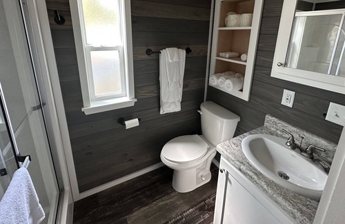An unforgettable time with endless amenities! Book a private, luxury cottage at our beautiful new resort. This cottage sleeps 4 - a master bedroom with a queen mattress. A loft with 2 twin xl beds, perfect for kids! Your cottage is stocked with dishes, towels, toiletries, coffee, 2 TVs with DirecTV, and more! Our resort has a lazy river, 2 waterslides, family pool, adult only pool with hot tub, tiki bar, 3 food trucks, gaga ball pits, pickleball courts, basketball courts and so much more! If you would like to rent a golf cart during your stay, contact our office prior to arrival to ensure one is available! To see more, view our social media pages or website @ Splash RV Resort. Booking can also be completed from our website.