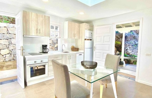 Disconnect, enjoy the tranquility, nature and the sea. Let yourself be go away in this unique, different and relaxing villa. It is a private paradise, the perfect place to enjoy life and relax in the wonderful Jacuzzi overlooking the ocean. Privileged situation, house surrounded by nature, wonderful views of the sea, the Teide volcano, the vegetation... Below the property are the beaches of Bollullo, El Ancón and Los Patos to which you can go walking! There are also two restaurants just a 3-minute walk away. It is advisable to rent a car to be able to visit beautiful places on the island. The nearest supermarkets are only 5 minutes away by car and open until 10pm even on Sundays. There is free parking inside the property. You can walk to the 3 beaches below the property as well as to the two nearby restaurants.