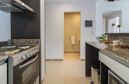 Coming back from a long walk to this apartment is a true relax. The living room offers a comfortable sofa to chill or watch TV. The table for 6 people can also be used as a study or work space. The bedroom has a comfortable double bed. The balcony, one more space, which proposes to sit and enjoy the view of the neighborhood, or simply rest, and for the guests, a toilette. The amenities offered by the building: gym, swimming pool, meeting room, games for children, grill and laundry.