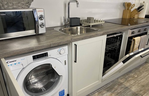 Modern, spacouse apartment located in town centre. Apartment provides free private parking, van or car. Two-bedroom apartment is equipped with a flat-screen TV with streaming services, a fully equipped kitchen with a dishwasher, washing machine and an oven, and 1 bathroom with bathrobes.