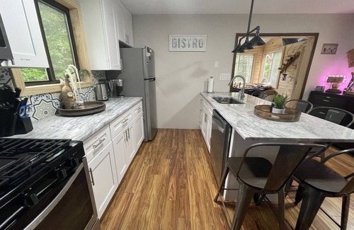 A completely revamped eclectic cottage is an exceptional mountain escape that gives the comfort of home while making for an ideal timberland & nature bound retreat.