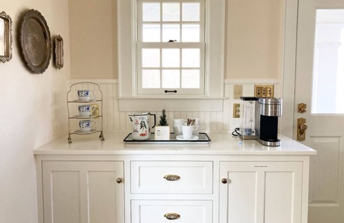 Boxwood House sleeps 10 in a spacious primary bedroom (king), a cheery sunroom (queen sofa bed), two upstairs bedrooms (one queen and one room with two full beds) and a cozy library (queen sofa bed).