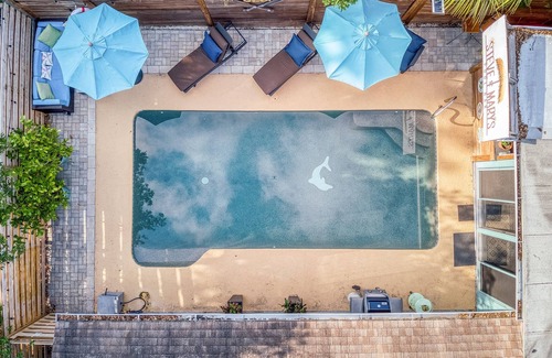This Vacation home is a Beatles themed "Octopus Garden" Villa. Splash into your vacation with our private, tropical inground heated pool, Cantina Bar and paver patio deck. Privacy is assured with an 8-foot horizontal fence enclosure. Pick your place to sunbathe, read, or view the 55 inch bar TV from our teak wood chairs and tables, or comfy chaise lounge seating around the 10,000 gallon pool. Reaching 8 foot depth, our Pebble Tec lined pool comes equipped with floats and games for your [enjoyment. Enhance the poolside experience with a cookout on our Weber propane grill while your beverages chill in our raised rolling cart cooler. Many resort style umbrellas are provided to keep you shaded.