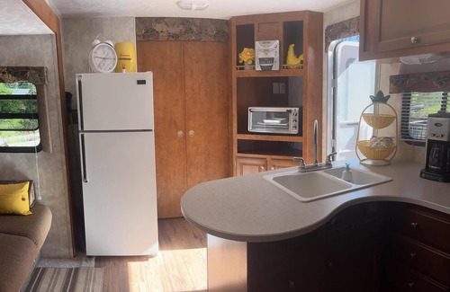 Travel Trailer at Christina Lake, walk to Kingsley Beach! is located in Christina Lake. Travel Trailer at Christina Lake, walk to Kingsley Beach! provides accommodation, featuring Air Conditioner, Pet Friendly, Balcony/Terrace, among other amenities. This House features Air Conditioner, Pet Friendly, Balcony/Terrace, to make your stay a comfortable one.