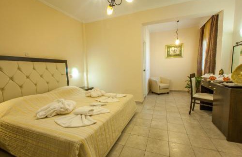 Located in Hanioti, a 3-minute walk from Hanioti Beach, Tresor Sousouras provides accommodations with a seasonal outdoor swimming pool, free private parking, a garden and a restaurant. This 4-star hotel offers a bar. The property has a 24-hour front desk, airport transportation, room service and free WiFi. At the hotel, each room comes with a desk. Complete with a private bathroom equipped with a shower and a hairdryer, guest rooms at Tresor Sousouras have a flat-screen TV and air conditioning, and certain rooms include a terrace. All rooms will provide guests with a fridge. The breakfast offers continental, Full English/Irish or American options. Pefkohori Beach is a 15-minute walk from the accommodation. Thessaloniki Airport is 57 miles away.