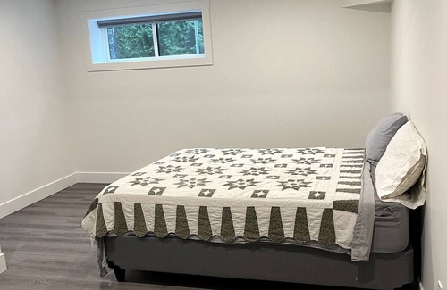 Forget your worries in this spacious and serene space as you bbq on the grill and relax under the covered deck overlooking the lush forest scape. Enjoy the massage chair after a long day on the mountain. Whether you visit in the summer or the winter you're a 5 minute walk to the Tsolum rivers edge, a 10 min drive to town or secluded beaches or 20 minutes to the top of Mount Washington . Settled in between Campbell River and Courtenay.