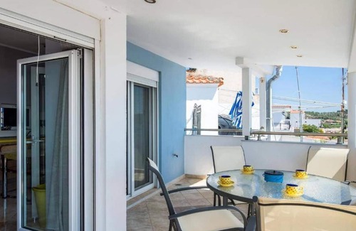 The apartment is on the beach of Potos. It is in the 2nd floor of the building this is why the guests can enjoy the amazing sea view.