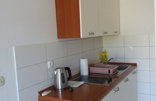 Apartment can accommodate 4 guests. Beds are situated in 2 sleeping rooms, within 44m2. Guests can use a private terrace to enjoy the warm summer evenings. The apartment offers the sea view. Food can be prepared using barbecue which is shared with other guests too. This accommodation unit welcomes pets at an additional charge.