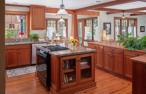 Fully furnished, largely with custom built furniture that complements the open floor plan with cherry, reclaimed heart-leaf pine and fir. Non-toxic finishes and hot-water solar panels contribute to sustainability. Outdoor living areas on the east, west and southern sides ensure the perfect temperature at any time of the day and take advantage of lush landscaping with mature trees and abundant gardens.