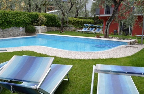 The Residence La Pergola is located in Malcesine in the central area, just minutes from the beach. It consists of ten apartments divided into studios, two-room and three-room apartments. Each apartment, modernly furnished, has a kitchenette, beds, bathroom and private balcony. TV, Wi-Fi, parking, garden with swimming pool and hydromassage corner, garage, panoramic terrace are available to customers free of charge. Family management. Ideal structure for any clientele: adults, families with children, groups of friends. Due to its proximity to the Malcesine cable car it is the perfect base for paragliding and mountain bikers. Animals are accepted.