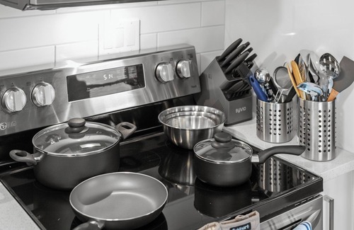 We provide a starter pack of essentials, including coffee, tea, salt/pepper, sugar, baking supplies, pots, pans, cutlery, soap, paper towels, toilet paper and other basic essentials to get you started.