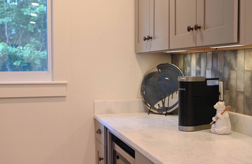 Upon opening the door you are immediately greeted with views of Craggy mountain. Hang your coat up in the closet, and get your pets organized with provided bowls, leashes and slobber pads. Dog treats and bear bells await on the entry table. Cruise through to the wide open gourmet kitchen with every utensil/dish you may need to cook a huge meal, including basic spices, oils and condiments. Stocked by true cooks, the new stainless appliances and marble countertops afford plenty of space to prep for a delicious dinner or prepare light snacks before heading out onto the deck or patio. Enjoy a large meal at the dining table with seating for 8 (pop up table and chairs for the extra 2 if 10 in your party), or hang on the large deck with adirondack chairs and enjoy the changing views of the mountains. Grill away on the gas & charcoal grill, and afterwards plop down on the world's most comfortable sofa, stream a movie on the 55' smart tv and enjoy the gas fireplace.