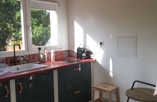 A tree house with bedroom and large panoramic terrace on the Serre de Barre with outdoor shower and dry toilets a real change of scenery and a comfortable studio with equipped kitchen (fridge, induction hob, microwave) double bed, shower room with WC, sink and shower, reversible air conditioning: in a green and enchanting setting with access to the heated swimming pool !!
