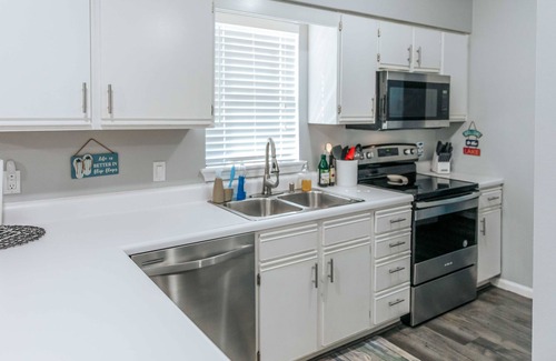 Your next winter escape awaits at the 2-bed, 2-bath Branson vacation rental! This newly renovated condo features 3 Smart TVs, a fully equipped kitchen, and a furnished balcony with golf course views. Spend snowy days at home cozying up by the electric fireplace and playing board games with the kids, or venture out to Silver Dollar City for some holiday-themed fun!