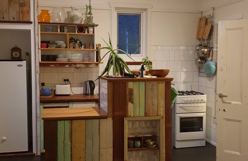 Located at the quieter 'Paris end' of the main street, our sunny apartment is an ideal base for exploring Kandos and Rylstone. Upstairs in a renovated 1920s building, you'll find generous rooms, super-comfortable beds, a well-equipped kitchen and great views. We're just a short walk to local shops and places to eat, and you're welcome to forage in the wildly overgrown back garden.